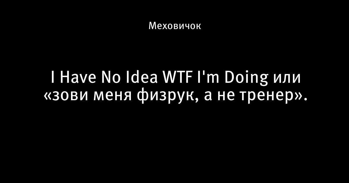 I Have No Idea WTF I'm Doing или «зови меня физрук, а не тренер».