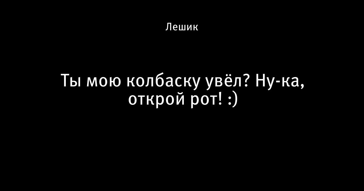 Ты мою колбаску увёл? Ну-ка, открой рот! :)