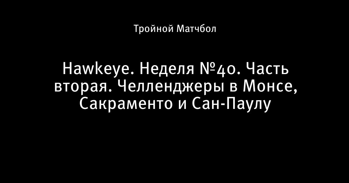 Hawkeye. Неделя №40. Часть вторая. Челленджеры в Монсе, Сакраменто и Сан-Паулу