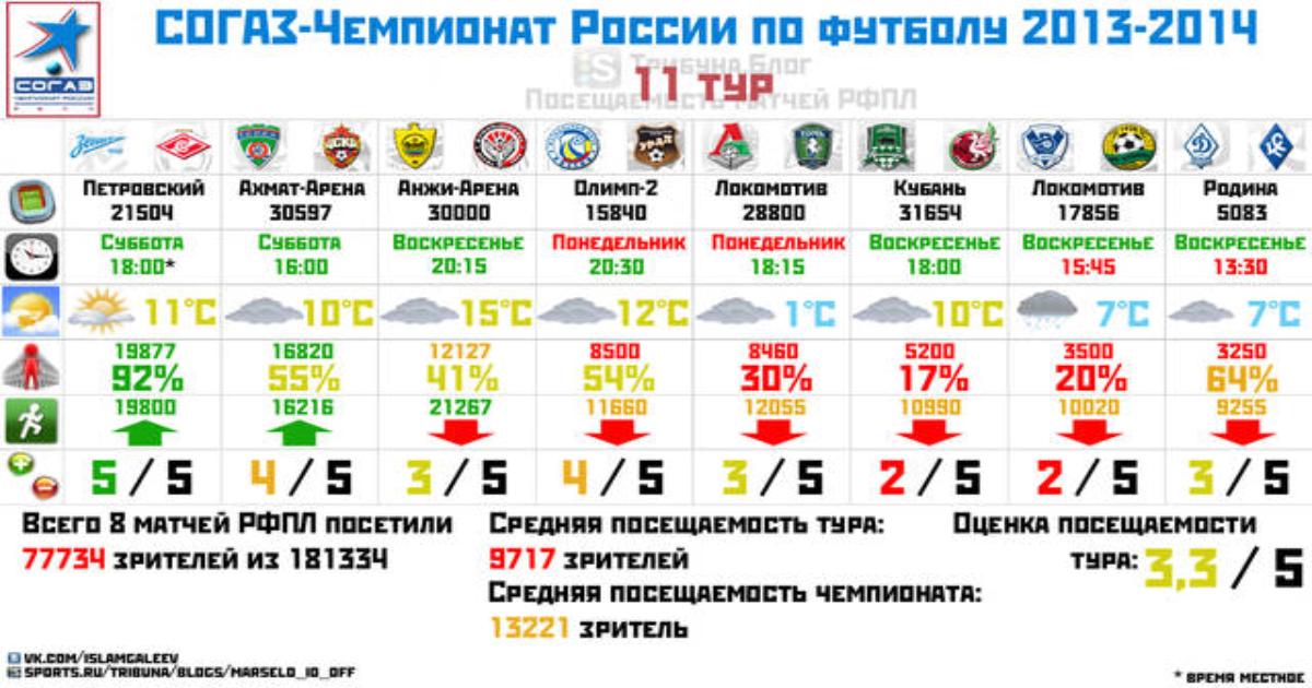 Посещаемость 11 тура чемпионата России по футболу, сезон 2013-2014