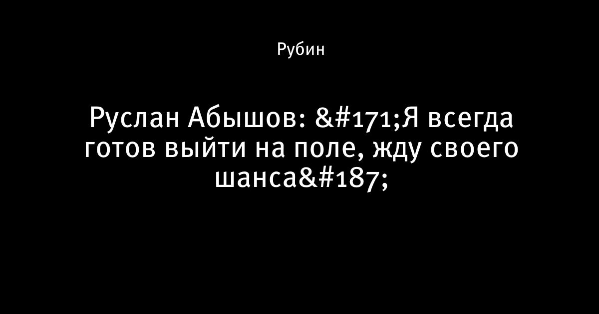 5 октября 2013, 17:54 Руслан Абышов: «Я всегда готов выйти на поле, жду своего шанса» 1 Автор Рубин Этот пост опубликован в блоге на Трибуне Sports.ru. Присоединяйтесь к крупнейшему сообществу спортивных болельщиков! Другие посты блога Футбольный клуб «Рубин» Рубин Руслан Абышов