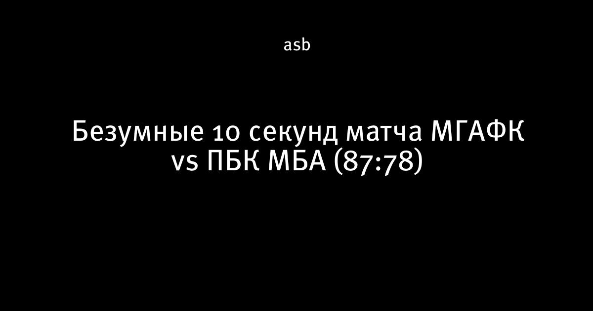 8 октября 2013, 15:35 Безумные 10 секунд матча МГАФК vs ПБК МБА (87:78) 1 Автор asb Этот пост опубликован в блоге на Трибуне Sports.ru. Присоединяйтесь к крупнейшему сообществу спортивных болельщиков! Другие посты блога АСБ