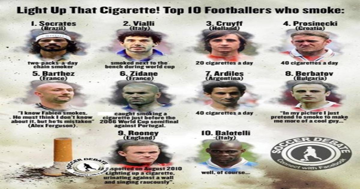 Ты нет, а он smoke. Топ-20 футболистов, которые «спалились» с сигаретой