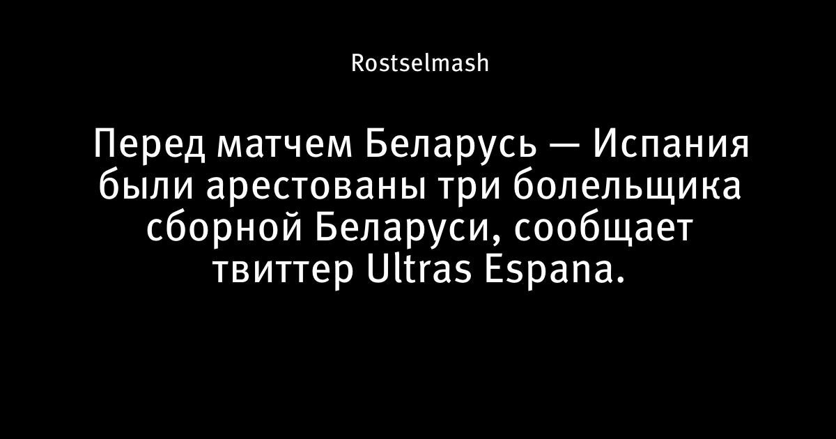 Перед матчем Беларусь — Испания были арестованы три болельщика сборной Беларуси, сообщает твиттер Ultras Espana.