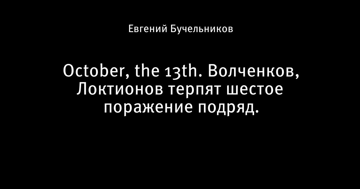 October, the 13th. Волченков, Локтионов терпят шестое поражение подряд.