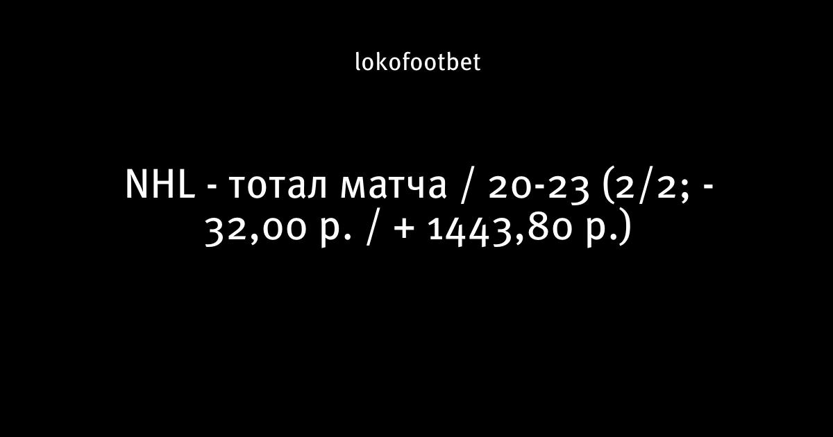 NHL - тотал матча / 20-23 (2/2; - 32,00 р. / + 1443,80 р.)