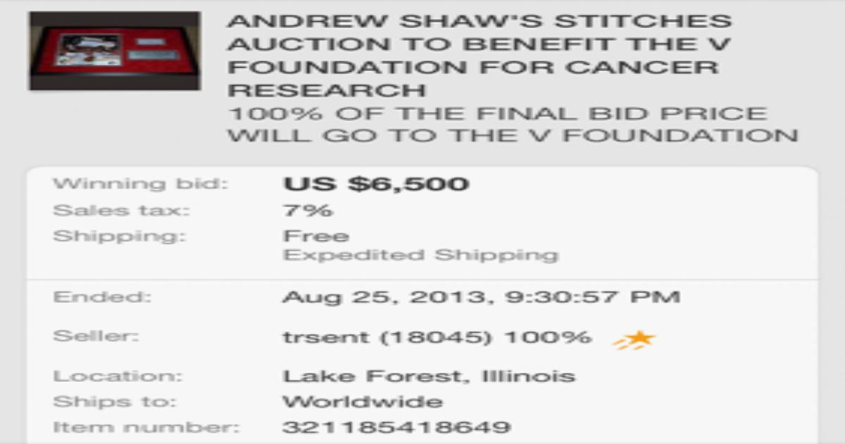 После того, как ему эти швы сняли, Эндрю выставил их на аукцион на e-bay и их купили за 6500 $.