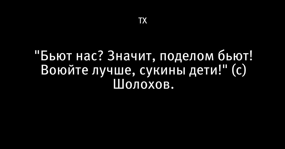 "Бьют нас? Значит, поделом бьют! Воюйте лучше, сукины дети!" (с) Шолохов.