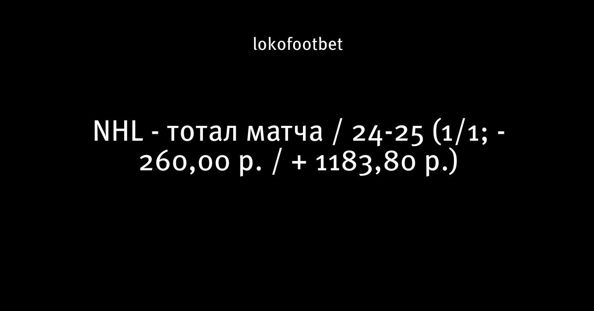 NHL - тотал матча / 24-25 (1/1; - 260,00 р. / + 1183,80 р.)