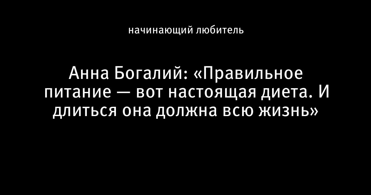 Анна Богалий: «Правильное питание — вот настоящая диета. И длиться она должна всю жизнь»