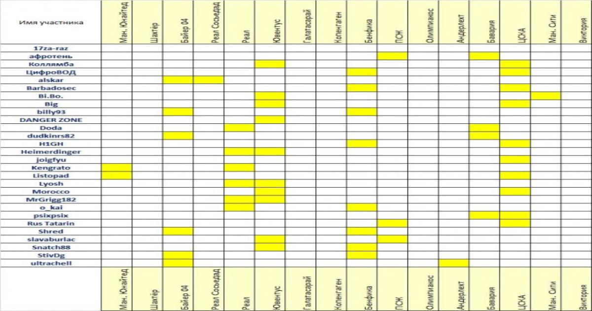 По 10 ставок было дано на "Ювентус" и ЦСКА, но туринцев игроки выбирали в обоих турах, а армейцев только во 2-ом. Обратим внимание на то, что Heimerdinger, Lyosh и MrGrigg182 ставили исключительно на соперников "Копенгагена". За 2 тура в Марафоне были задействованы все 4 группы.