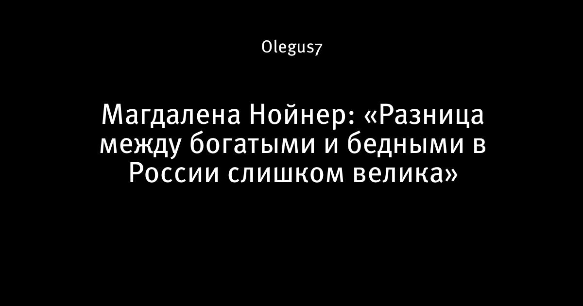 Магдалена Нойнер: «Разница между богатыми и бедными в России слишком велика»