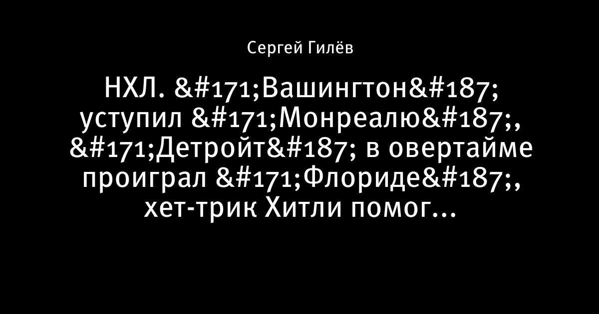 НХЛ. «Вашингтон» уступил «Монреалю», «Детройт» в овертайме проиграл «Флориде», хет-трик Хитли помог «Сан-Хосе» победить «Филадельфию»