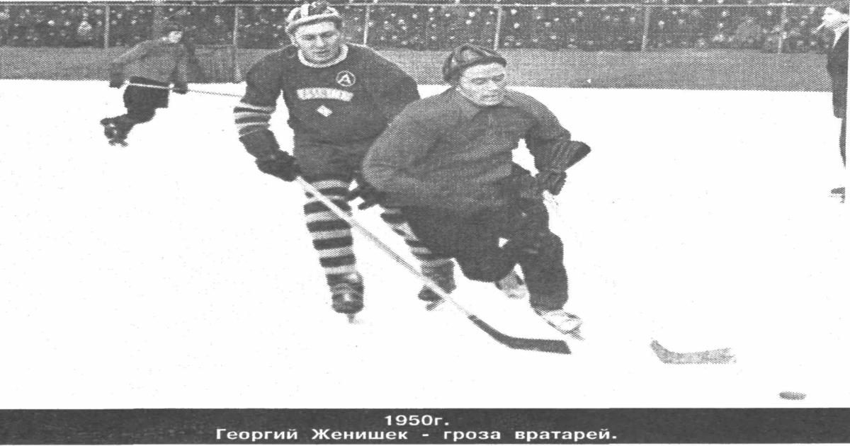 Георгий Женишек: Обмундирование было ужасно плохое - шайба пробивала его насквозь. Верно, приходилось подкладывать книжки, чтобы не было больно. Клюшки тоже были плохие и часто ломались при сильных бросках. За сезон мы изводили три тысячи клюшек.