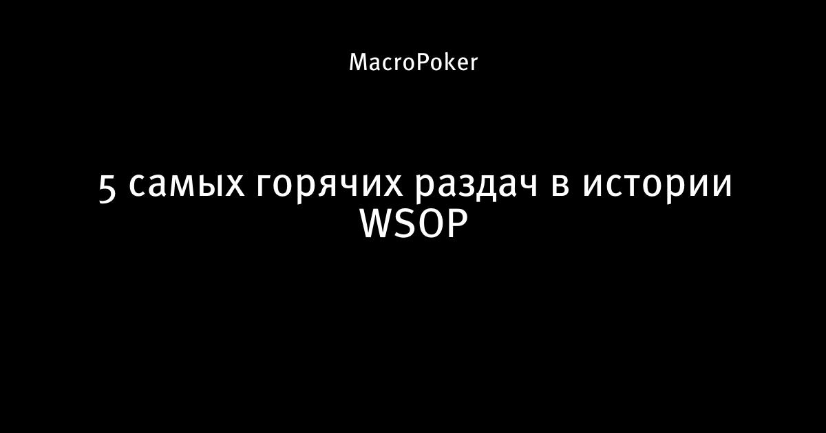 Уже сегодня в Лас-Вегасе будет дан старт финальному столу 2013 WSOP Main Event. Мы будем максимально подробно освещать розыгрыш November Nine, а пока мы предлагаем вам насладиться 5 самыми горячими и удивительными раздачами в истории World Series of Poker. Это надо видеть!