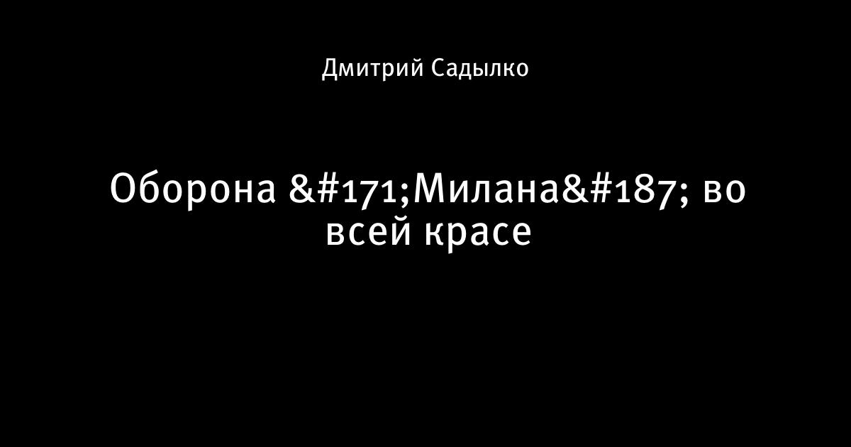 7 ноября 2013, 01:37 Оборона «Милана» во всей красе Автор Дмитрий Садылко Этот пост опубликован в блоге на Трибуне Sports.ru. Присоединяйтесь к крупнейшему сообществу спортивных болельщиков! Другие посты блога Вы это видели? Лига чемпионов УЕФА Барселона Лионель Месси Милан