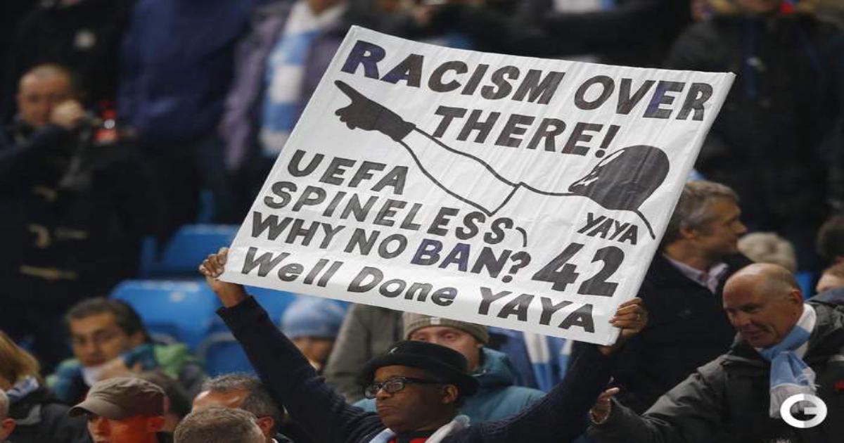 «Вон там расизм!(указывая на гостевой сектор цска). Мягкотелый УЕФА, где дисквалификация?» Баннер болельщика «Сити» в поддержку Яя Туре.