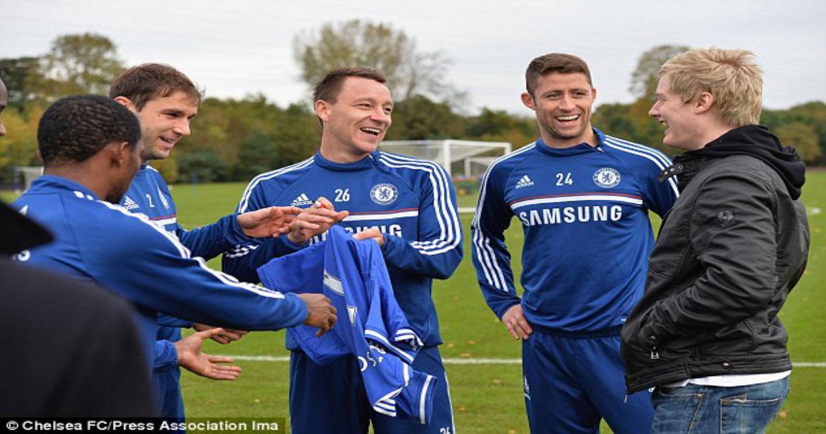 Особенный день: Нил Робертсон (справа) является огромным поклонником Челси и посетил в четверг базу клуба