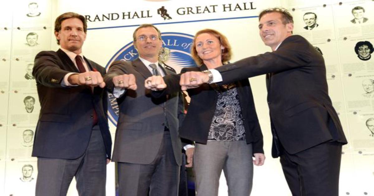 В 2008 году кандидатуры трёх женщин-хоккеисток были представлены для их появления в Зале Хоккейной Славы. В 2010-м две из них - Angela James и Cammi Granato удостоились этой чести. И вот сегодня вместе с Крисом Челиосом, Скоттом Нидермайером, Брэнданом Шенаханом, Фредом Широ в Зал Хоккейной Славы была введена 3-я женщина - семикратная чемпионка мира в составе женской сборной команды Канады Джеральдин Хини. Джеральдин известна также как "Бобби Орр в юбке" и это прозвище она получила неспроста. В 1990 году, в финале 1-го женского чемпионата мира, в котором сборная Канады встретилась со сборной США, Джеральдин забила победный гол и сделала она это также экспрессивно, как и Бобби Орр в финале Кубка Стэнли 1970 года: