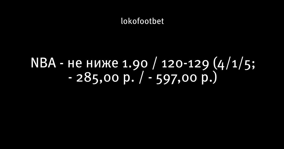 NBA - не ниже 1.90 / 120-129 (4/1/5; - 285,00 р. / - 597,00 р.)