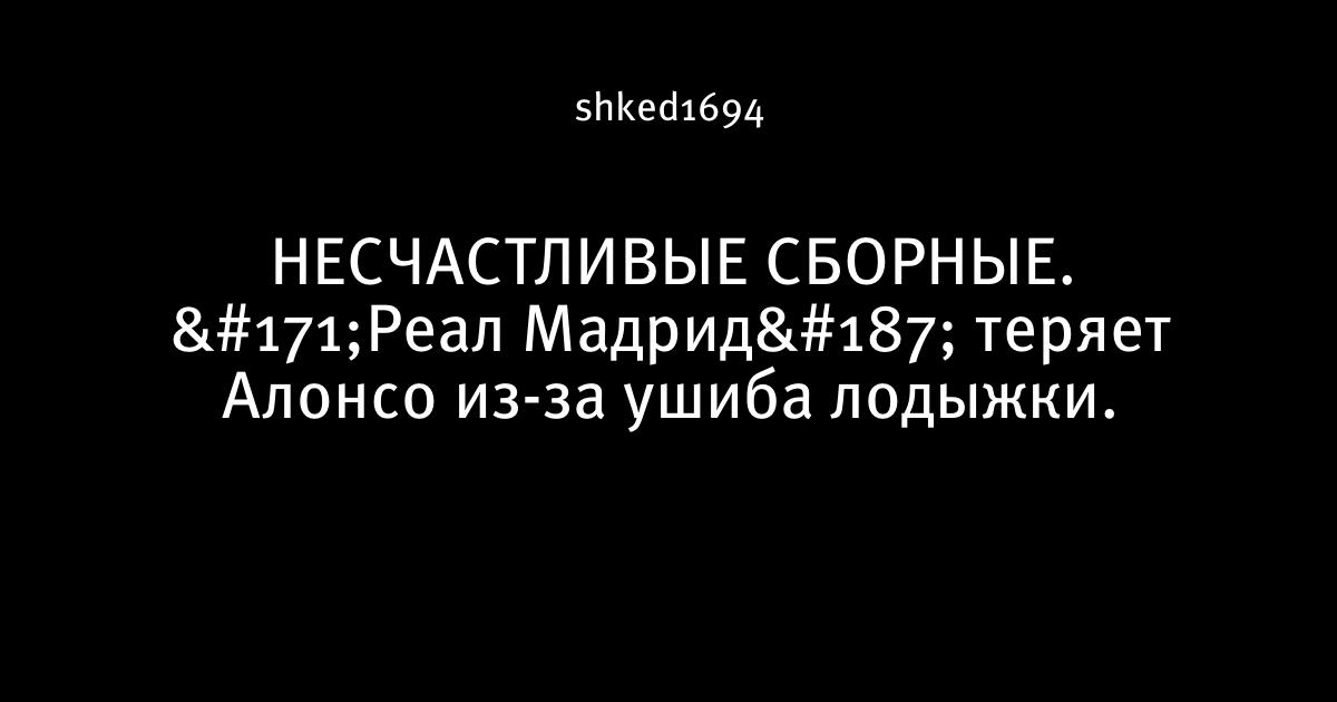 Стоит ли напоминать, что Алонсо совсем недавно вернулся в строй после тяжелой травмы? Точной информации о сроках восстановления пока нет, но сам факт травмы ужасает. Сначала серьезнейшую травму получил Хедира - разрыв крестообразной связки , затем Алонсо - сильный ушиб лодыжки. Сразу 2 основных игрока получают травмы, выступая за сборные. Кто-то скажет, что это совпадение. Может быть, так и есть. Но получают травмы игроки "Реал Мадрида" не только в текущий перерыв на матчи сборных. Вообще, повреждения ( к великому сожалению!) стали синонимом выступления за сборную.