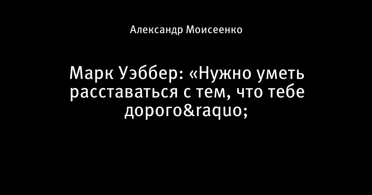 Марк Уэббер: «Нужно уметь расставаться с тем, что тебе дорого»