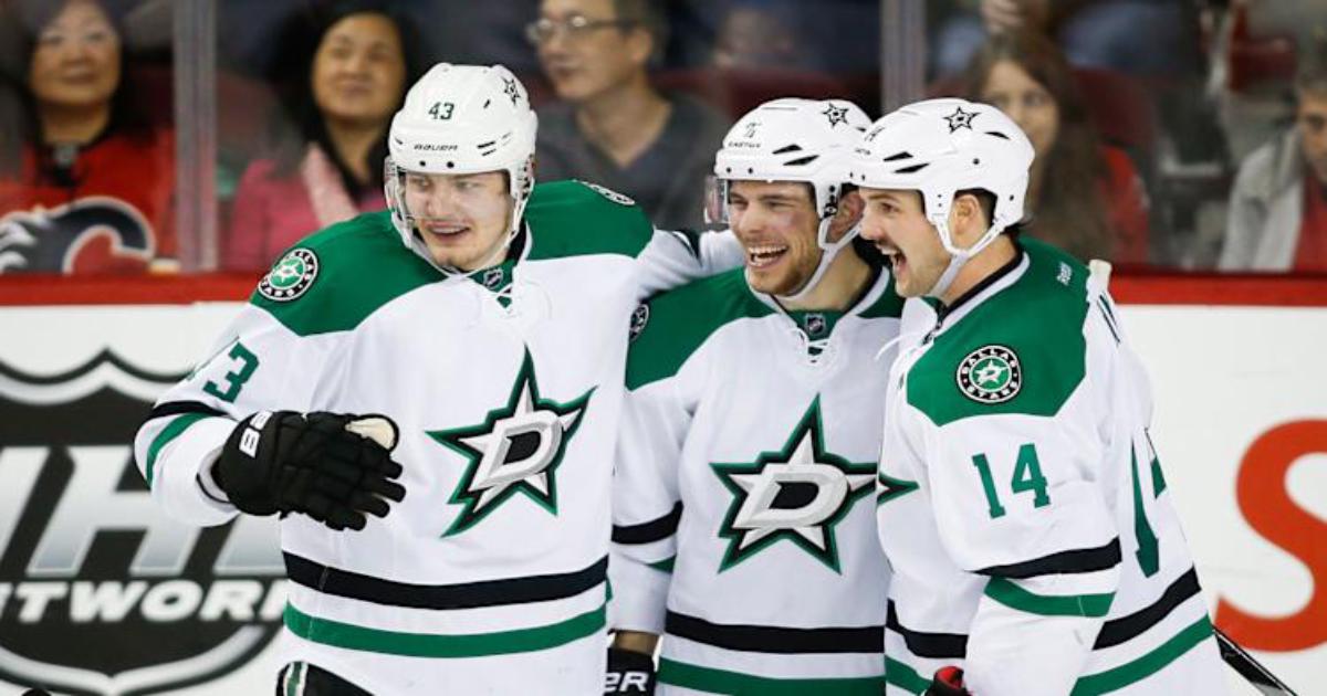 Трудно сказать, нащупало ли игру наше нападение. Пока больше похоже на то, что Тайлер Сегин все-таки сыгрался с Джейми Бенном, а некоторые игры они вообще вытащили вдвоем. В последнее время им в связку ставят Ничушкина, который отвлекает защитников на себя, ну а Сегину с Бенном большего ничего и не надо. Можно даже предположить, что на предматчевых установках Валерию говорят «ты просто не мешай, а смотри и учись». И он учится. Проведя шесть игр в первом звене он уже успел забросить шайбу, набрать пять очков и заработать «плюс восемь». Всего же за двадцать игр игроки Далласа забросили 55 шайб, 29 из которых случились с участием Джейми или Тайлера, причем они оба набрали по 26 очков и со значительным отрывом лидируют в списке бомбардиров команды.