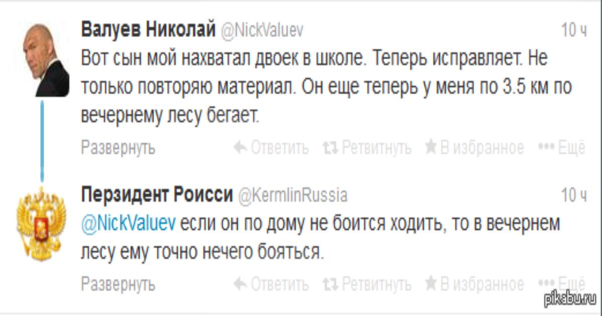 20 ноября 2013, 15:25 Минутка твиттера. Как Валуев воспитывает сына Автор sp1k Этот пост опубликован в блоге на Трибуне Sports.ru. Присоединяйтесь к крупнейшему сообществу спортивных болельщиков! Другие посты блога Вы это видели? Николай Валуев