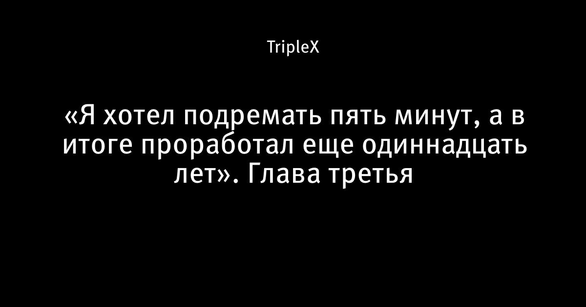 «Я хотел подремать пять минут, а в итоге проработал еще одиннадцать лет». Глава третья