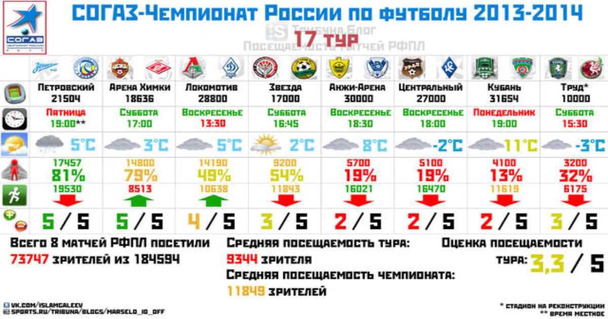 Посещаемость 17 тура чемпионата России по футболу, сезон 2013-2014