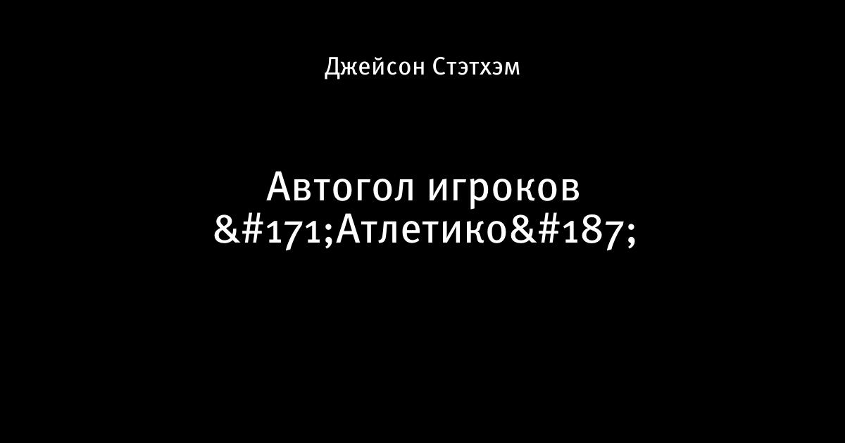 27 ноября 2013, 19:35 Автогол игроков «Атлетико» Автор Джейсон Стэтхэм Этот пост опубликован в блоге на Трибуне Sports.ru. Присоединяйтесь к крупнейшему сообществу спортивных болельщиков! Другие посты блога ProZenit Open Blog Зенит