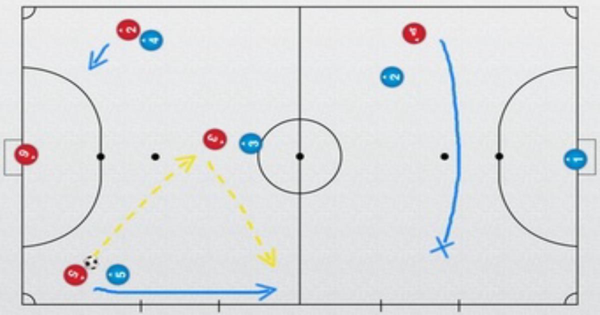 В силу больших физическим усилий анаэробной направленности, движения игроков, пытающихся сбросить опеку противников и в силу мышечной усталости, тактические действия на ограниченном пространстве для игрока с мячом в плане техники будут недостаточны. Поэтому, старайтесь перекрывать линию передачи вперед, заставляя игрока смещаться на фланг. Таким образом, мы сохраним оборонительные позиции.