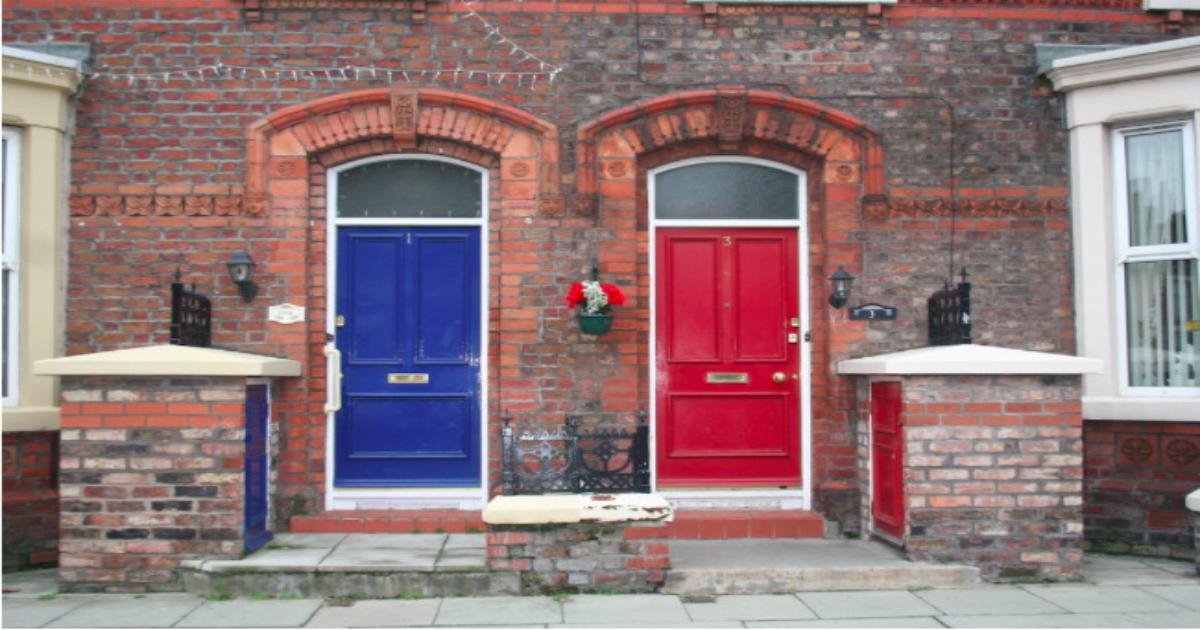 (на фото дом с флагом «Ливерпуля» прямо напротив «Гудисона»)