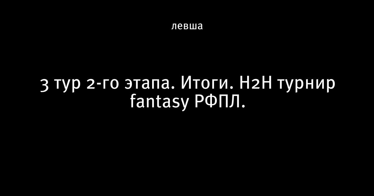 3 тур 2-го этапа. Итоги. Н2Н турнир fantasy РФПЛ.