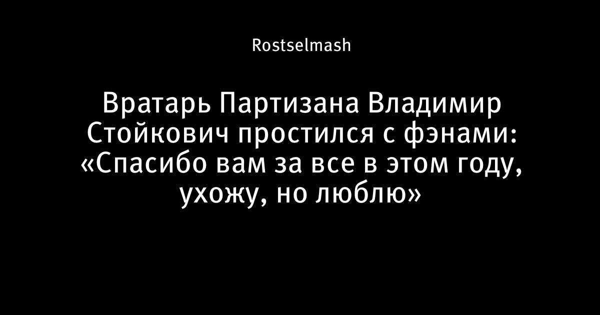 Вратарь Партизана Владимир Стойкович простился с фэнами: «Спасибо вам за все в этом году, ухожу, но люблю»