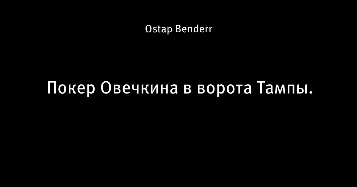 11 декабря 2013, 12:02 Покер Овечкина в ворота Тампы. 1 Автор Ostap Benderr Этот пост опубликован в блоге на Трибуне Sports.ru. Присоединяйтесь к крупнейшему сообществу спортивных болельщиков! Другие посты блога Телевизор 3.0 Александр Овечкин видео