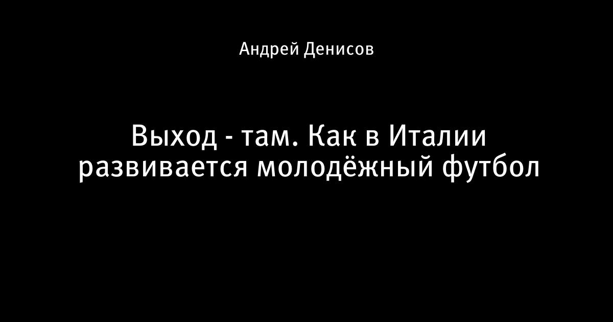 В Италии футболом занимаются 840 тысяч детей, что соответствует 10 процентам ребят в возрасте от 5 до 19 лет. Разве среди них не найдется нового Пирло или нового Буффона? Решение проблем молодёжного футбола, да и всего итальянского, кроется не в реформах или чего-либо там еще, а в головах. Пока там, наверху, не поймут, что кальчо давно нуждается в настоящей революции, он и останется таким – вроде бы живым, а вроде бы и… Все знают, где находится выход и начинают делать первые шаги к нему. Шаги к возрождению.