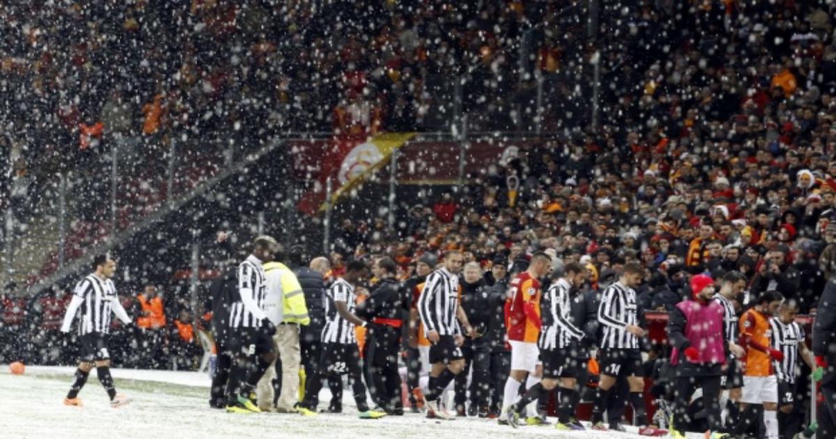 Вчера на Турцию обрушился страшный снегопад с градом. Матч между «Галатасараем» и «Ювентусом» сначала приостановили, затем вообще перенесли. 58 оставшихся минут будут доиграны сегодня в 17.00. Зеленое поле стадиона «Турк Телеком» превратилось в ристалище из поздних туров российского чемпионата всего за 8 минут.