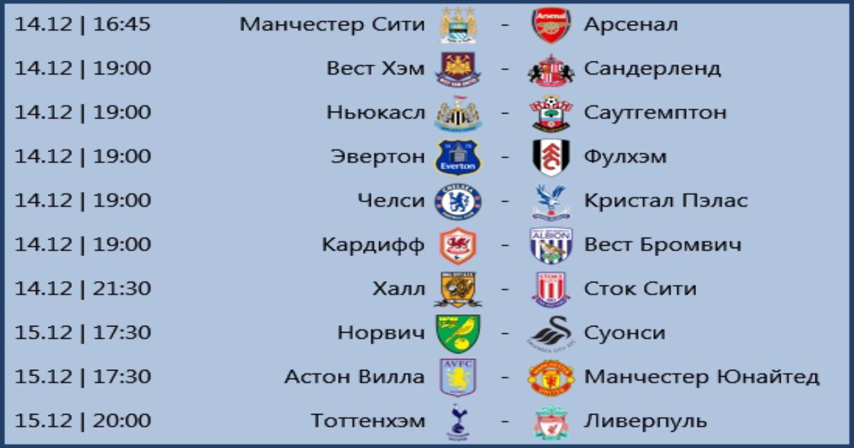 В 16 туре Английской Премьер-лиги играют: