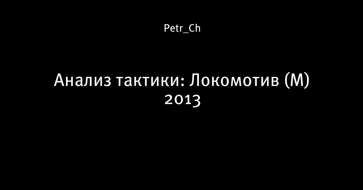 14 декабря 2013, 15:03 Анализ тактики: Локомотив (М) 2013 1 Анализ тактики: Локомотив (Москва)_окт-нояб 2013 from Peter Chulkov Автор Petr_Ch Этот пост опубликован в блоге на Трибуне Sports.ru. Присоединяйтесь к крупнейшему сообществу спортивных болельщиков! Другие посты блога A little bit about tactics Локомотив Организация РПЛ тактика