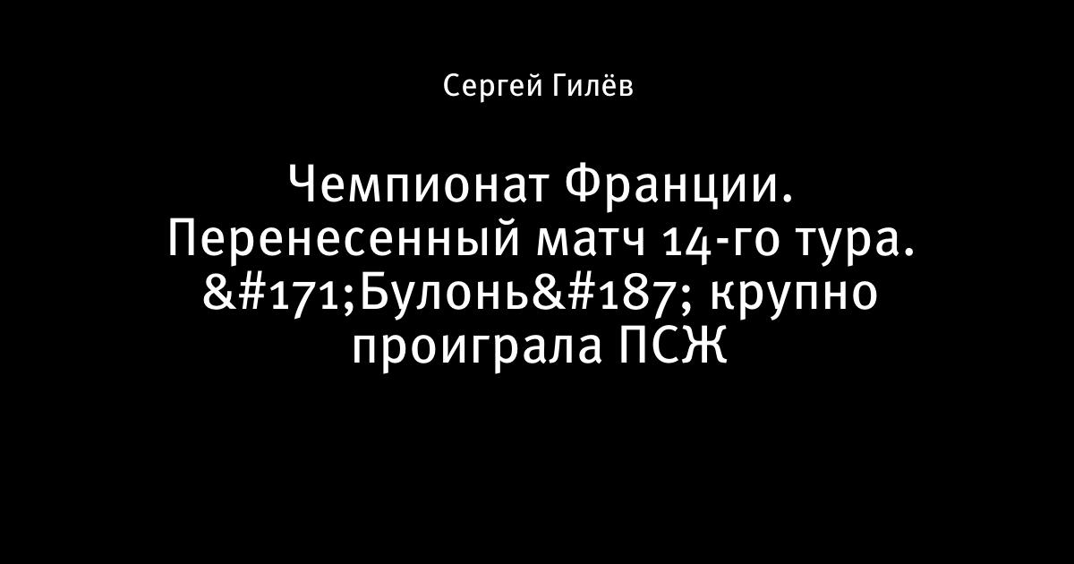 3 декабря 2009, 01:43 Чемпионат Франции. Перенесенный матч 14-го тура. «Булонь» крупно проиграла ПСЖ Булонь ПСЖ 2:5 1:0 Дукатель (36), 1:1 Шантом (61), 1:2 Луиндула (63, пенальти), 1:3 Эрдинч (67), 1:4 Эрдинч (70), 2:4 Рамар (82, пенальти), 2:5 Морис (86) Автор Сергей Гилёв Этот пост опубликован в блоге на Трибуне Sports.ru. Присоединяйтесь к крупнейшему сообществу спортивных болельщиков! Другие посты блога Разборки в олимпийском Париже