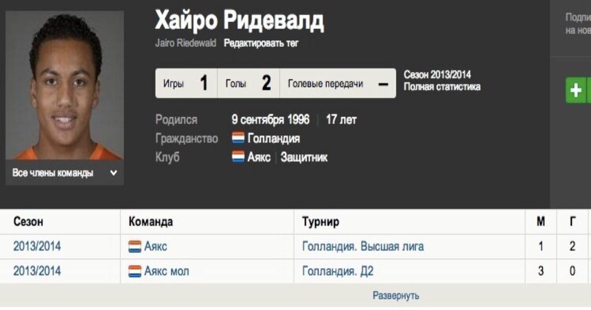 Впрочем, покликав по вкладкам (статистика, карьера) вы обнаружите, что этот тинейджер перевидел уже в своей жизни и «Барселону», и «Милан», и футболку сборной Голландии уже надевал – просто в юношеских турнирах. Да, данные по ним мы тоже понемногу начинаем собирать.