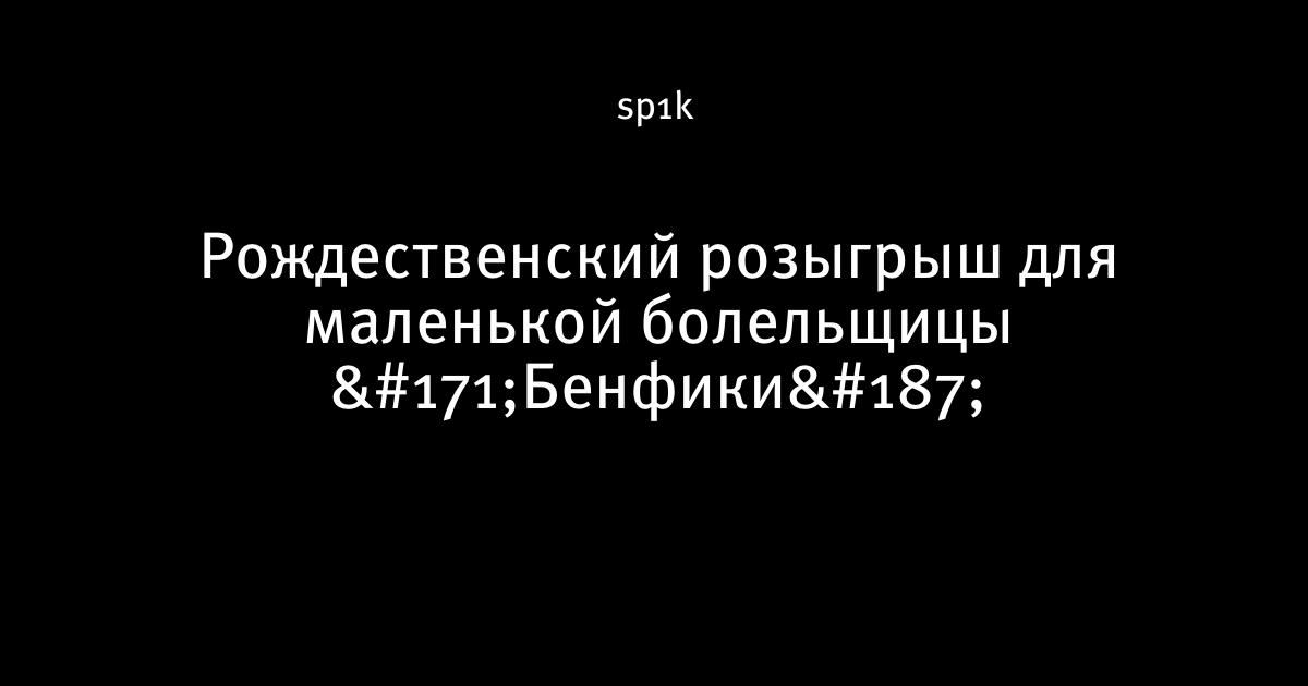 27 декабря 2013, 15:25 Рождественский розыгрыш для маленькой болельщицы «Бенфики» 1 Автор sp1k Этот пост опубликован в блоге на Трибуне Sports.ru. Присоединяйтесь к крупнейшему сообществу спортивных болельщиков! Другие посты блога Вы это видели? болельщики видео Порту Бенфика