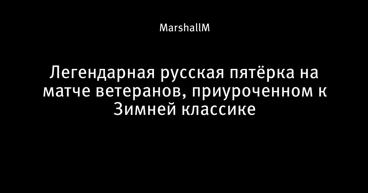 2 января 2014, 17:23 Легендарная русская пятёрка на матче ветеранов, приуроченном к Зимней классике Автор MarshallM Этот пост опубликован в блоге на Трибуне Sports.ru. Присоединяйтесь к крупнейшему сообществу спортивных болельщиков! Другие посты блога Вы это видели? Игорь Ларионов Вячеслав Фетисов Владимир Константинов Вячеслав Козлов Сергей Федоров