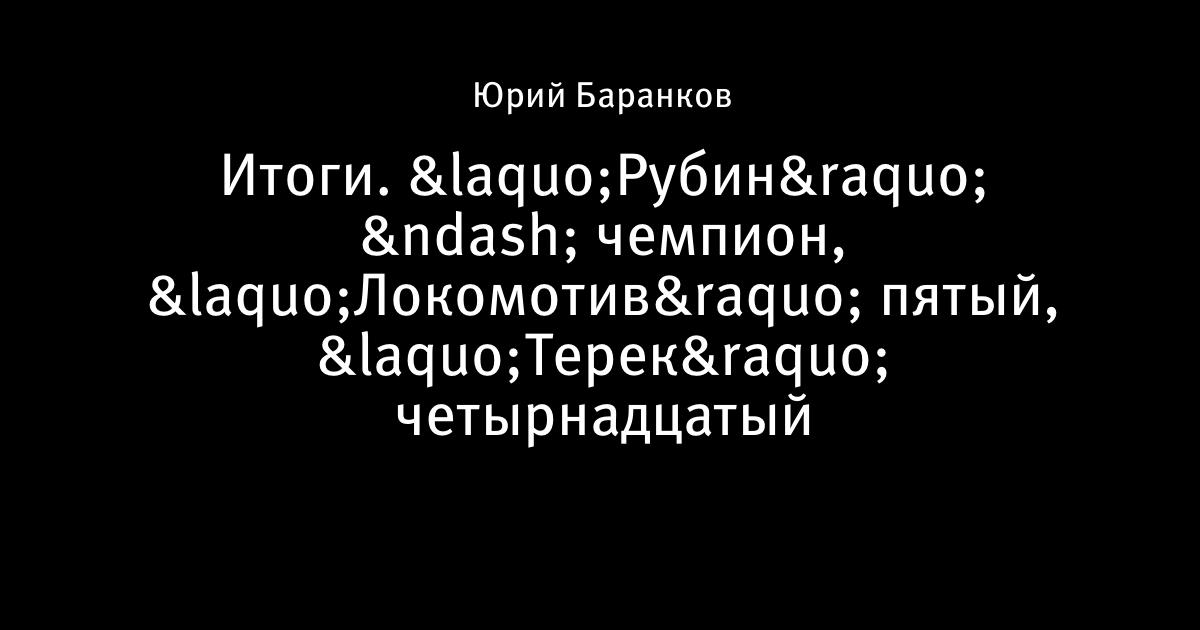 Итоги. «Рубин» – чемпион, «Локомотив» пятый, «Терек» четырнадцатый