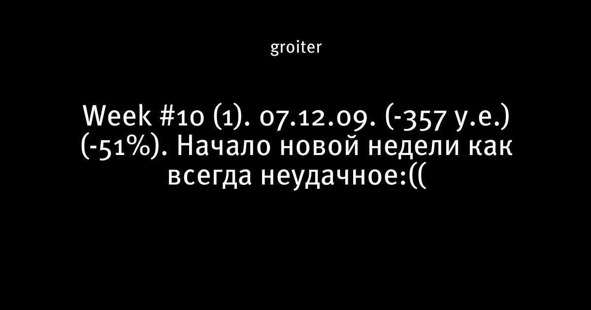 Week #10 (1). 07.12.09. (-357 у.е.) (-51%). Начало новой недели как всегда неудачное:((