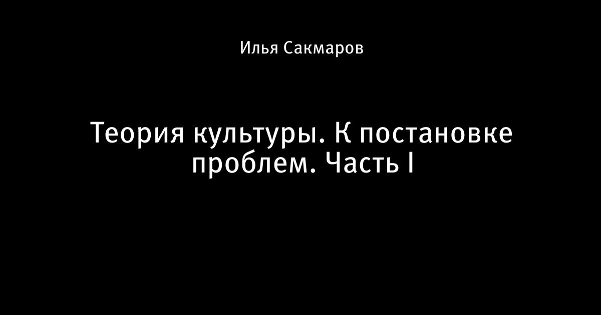 Теория культуры. К постановке проблем. Часть I