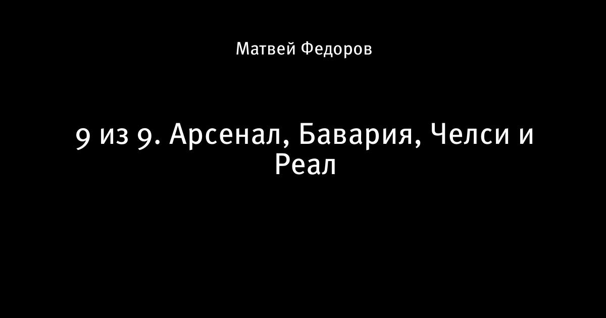 9 из 9. Арсенал, Бавария, Челси и Реал
