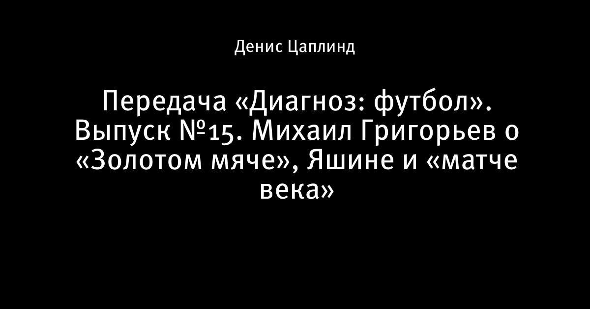 Передача «Диагноз: футбол». Выпуск №15. Михаил Григорьев о «Золотом мяче», Яшине и «матче века»