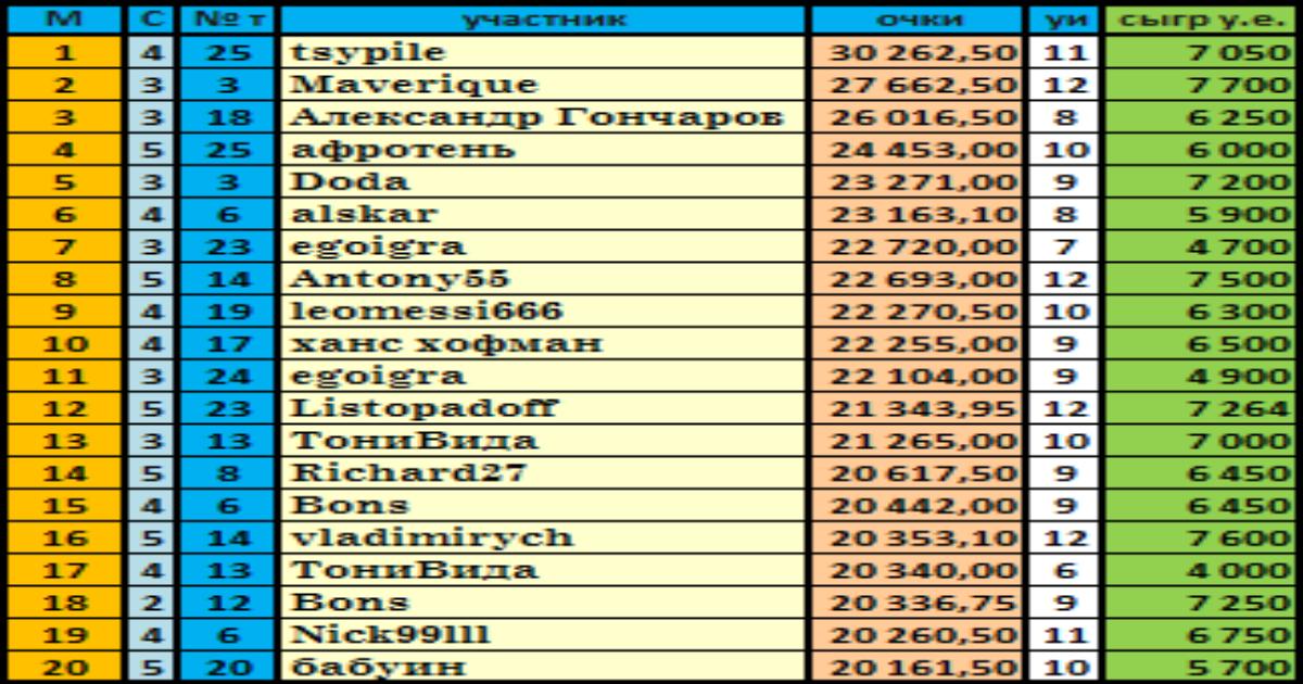 (гроссмейстерскую отметку 20000 набранных очков преодолевали 20 раз из 4531 прогноза)